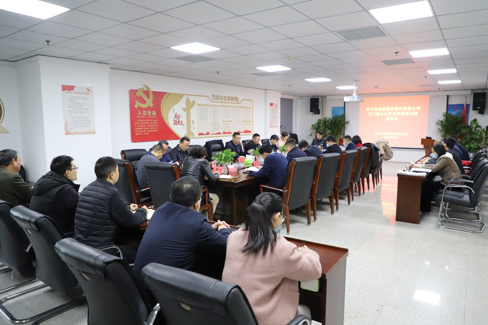 來源: 本站 發布時間: 2021-01-081月5日,公司召開黨委擴大會,公司領導班子、所屬單位黨組織書記、副書記及公司中層副職以上人員參加,會議專題傳達集團紀委轉發的《中共河南省紀委辦公廳關于更嚴更細落實中央八項規定精神確保2021年元旦春節風清氣正的通知》及集團黨委對下屬單位黨費管理問題的通報,并就公…