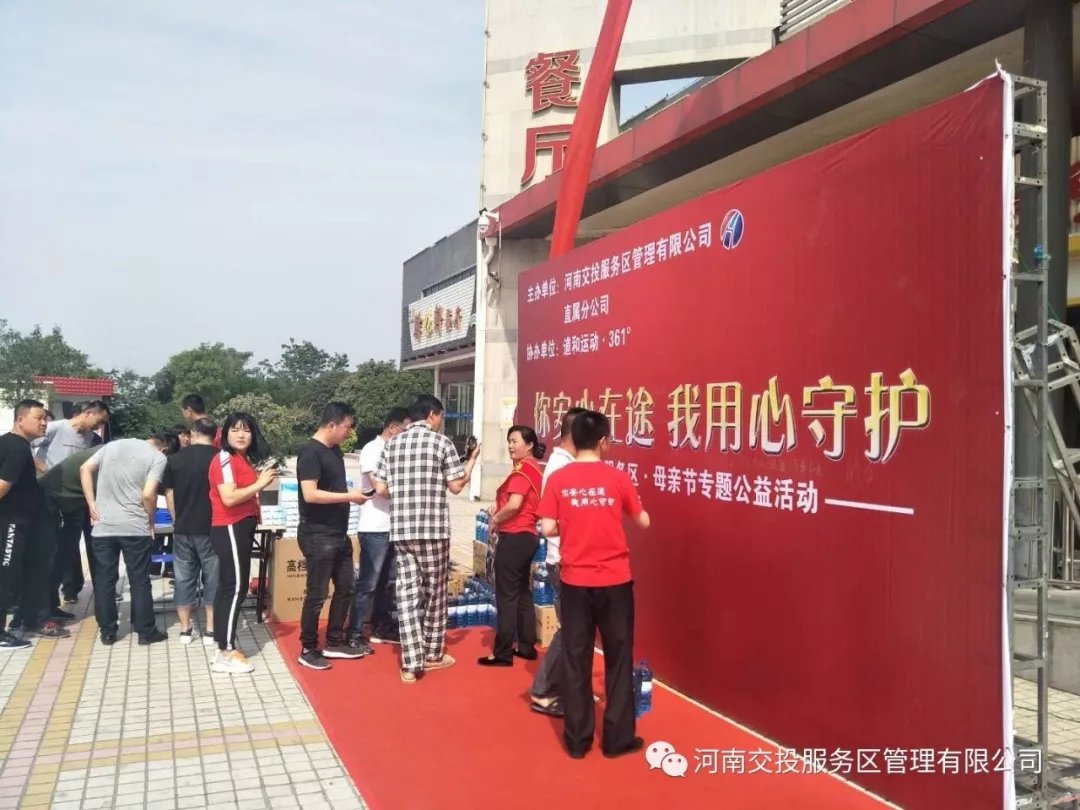 5月12日母親節當天,河南交投服務區公司直屬分公司攜手道和運動·361°共同舉辦一場主題為“你安心在途,我用心守護”的獻愛心活動,在鶴壁、鞏義、三門峽、靈寶、開封、商丘、漯河等七個高速服務區內同時啟動進行,基本覆蓋全省各個高速主干道,形成全省聯動,全面唱響公司所屬服務區全體員工“服務司乘、奉獻社會”的精神之歌。 活動當天,七個服務區內工作人員用微笑和愛心向到達服務區的司乘人員送上愛心襪子、愛心抽紙、愛心玻璃水,以表達天下所有母親的祝福。服務區內發送愛心禮品的桌子前面,人頭攢動,愛意濃濃?,F場參與愛心活動的人員以車輛為單位,來自全國各地的司乘人員有條不紊地的排隊依次領取發放的愛心禮品。一位乘客興奮地說:“今天能和母親一道路過這里參加這樣的活動很開心,充分感受了服務區熱情、細心的服務。等回去了,一定給我們當地服務區也建議一下,多搞一些這樣的活動。” 在社會公益方面,交投服務區公司一直發揮責任擔當。通過舉辦本次母親節專題活動,更好地展示了公司的企業文化、精神風貌,充分體現了服務區員工的服務意識、愛心意識、奉獻意識,進一步為廣大司乘人員提供用心、細心、貼心服務。