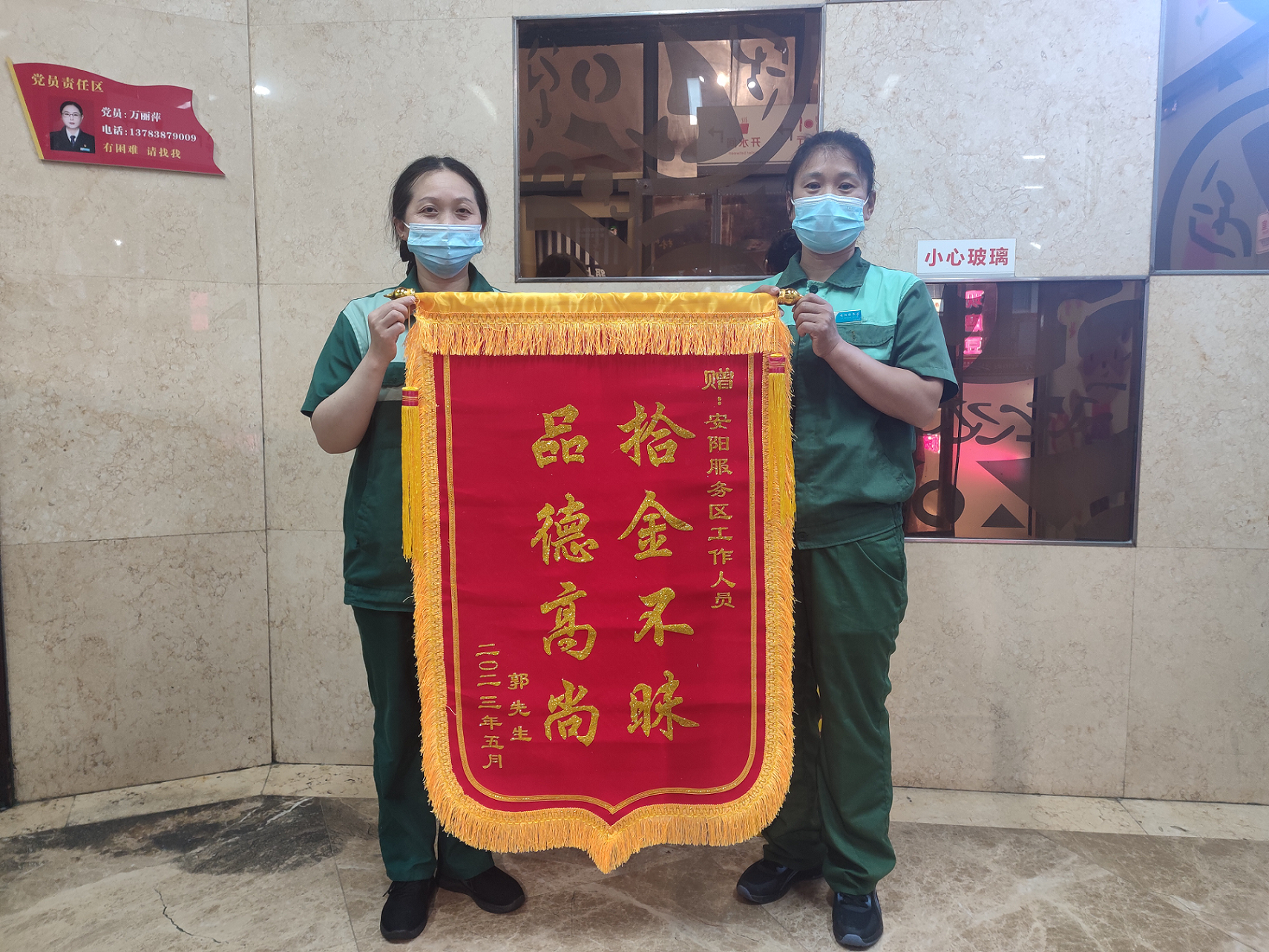 2023-05-30 作者:5月30日,安陽(yáng)服務(wù)區(qū)收到一件來(lái)自河北的郭先生郵寄了一面寫有“拾金不昧 品德高尚”的錦旗。事情要從5月23日說(shuō)起,當(dāng)天保潔員宋保榮在衛(wèi)生間打掃衛(wèi)生時(shí)撿到一個(gè)女士手提包,第一時(shí)間上交至辦公室,經(jīng)共同查看,包內(nèi)有現(xiàn)金千余元、手機(jī)一部及個(gè)人物品若干。服務(wù)區(qū)通過多方努力與…
