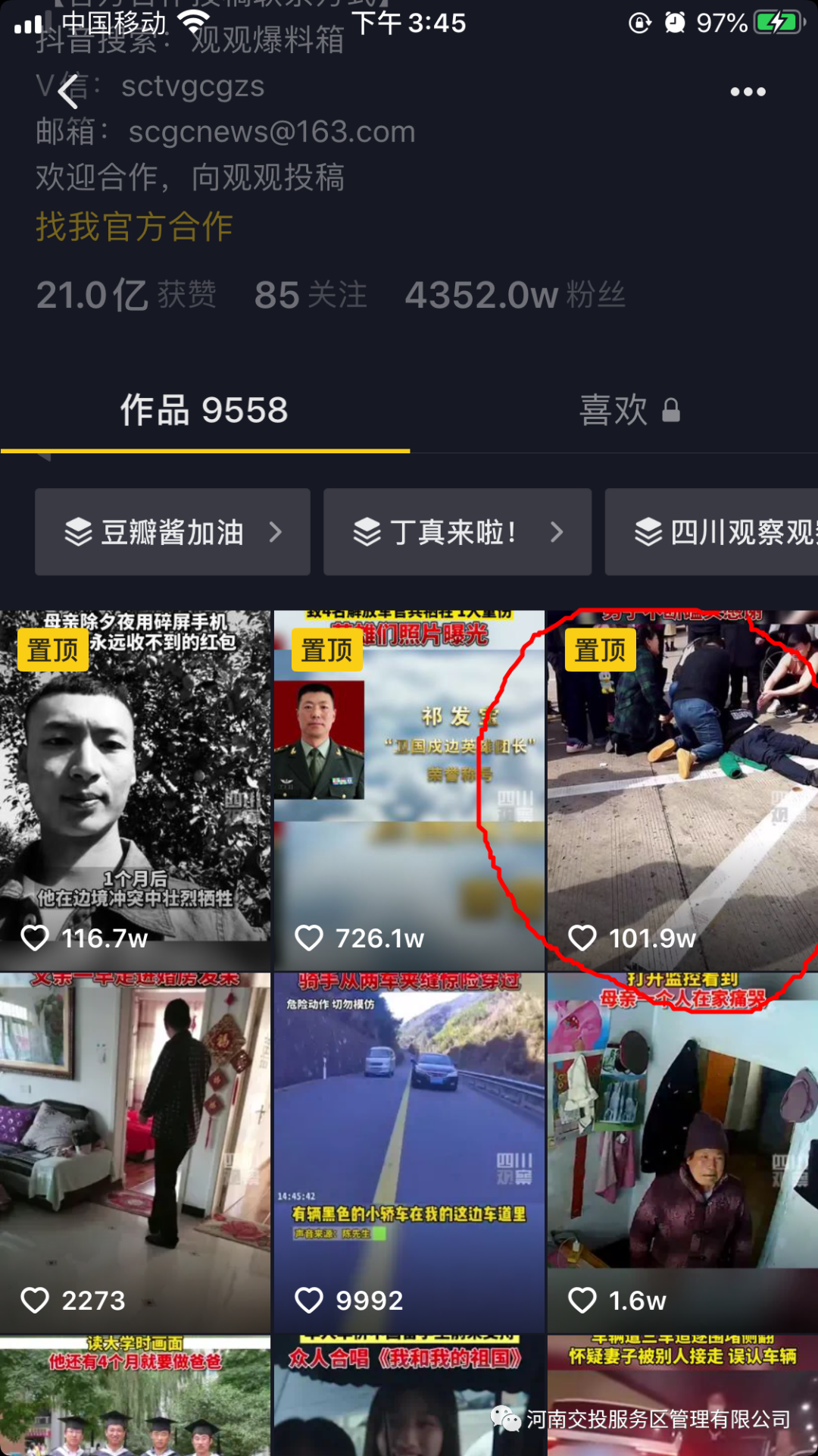 2021-02-20 作者:2月20日,河南廣播電視臺都市頻道記者就2月16日發生在禹州服務區救治心梗患者,家屬跪謝感恩事件進行現場采訪。該事件由圍觀群眾發表抖音短視頻后,2月19日經四川廣播電視臺新媒體官方認證抖音號“四川觀察”轉發,一天內獲贊101.9萬,分享下載近2000次,并曾一度排名抖音熱榜…