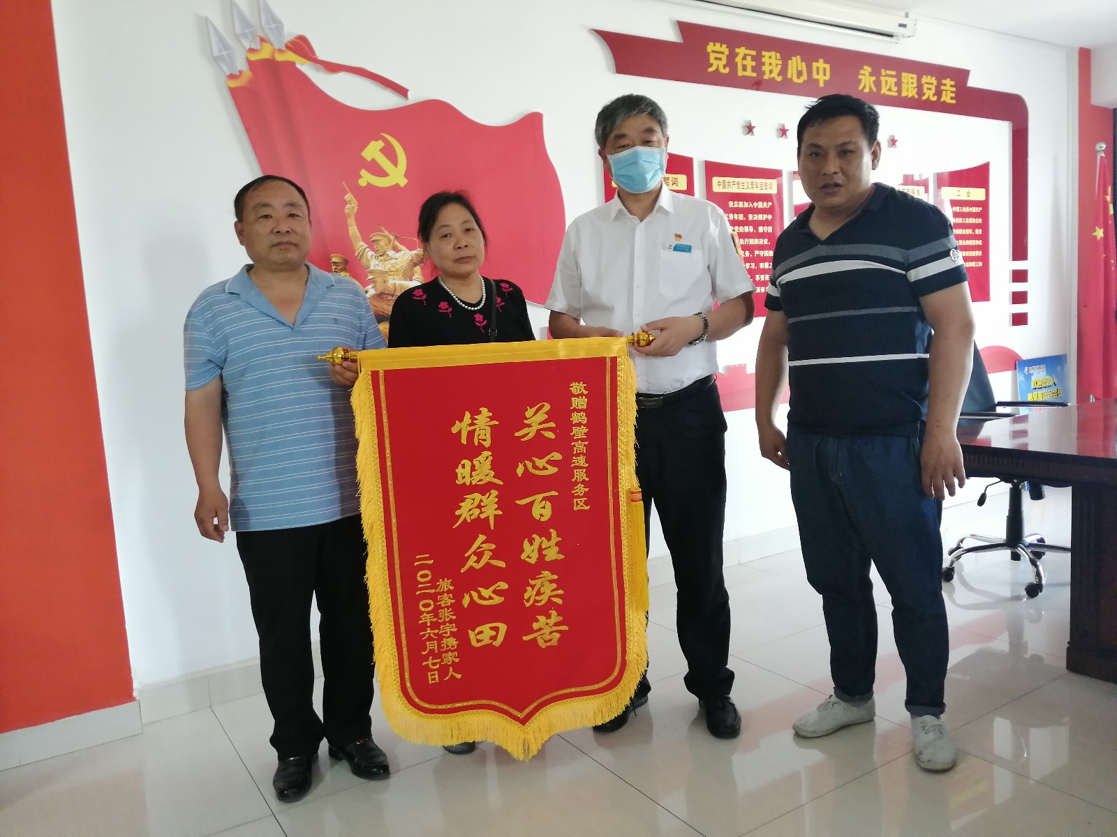2020-06-07 作者:6月7日,司乘張宇先生在母親及家人的陪同下專程趕到鶴壁服務區,送來一面錦旗“關心百姓疾苦 情暖群眾心田”,再次向服務區工作人員表示感謝。5月29日18:40,張宇陪同父親途徑鶴壁服務區,入廁時父親突發疾病暈倒,張宇手足無措,急得大哭,保潔員董東平聽到張宇的哭聲立即前…